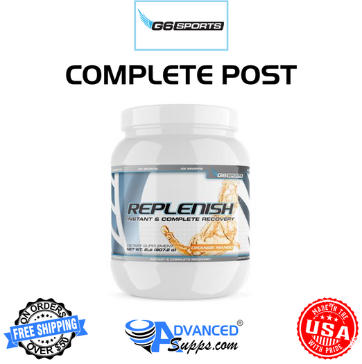 G6 Sports Nutrition Replenish is a post workout formula that helps to provide your muscles instant and complete recovery.Formulated with 20 grams of whey protein per serving made up of amino acids, which are the building blocks of protein and muscle mass. Protein helps to build, maintain, and replace tissues in your body, so it is key to muscle building and recovery. G6 Replenish formula also contains 11 grams of BCCA’s (branch chain amino acids) and EAAs (essential amino acids) that are the building blocks to protein and help increase muscle mass and aid in recovery. After a workout, your muscle fibers and broken down and need to recover. BCAA’s (branch chain amino acids) and EAAs (essential amino acids), help your muscles to recover faster, allow your muscles to repair and help to combat muscle soreness and fatigue. Your glycogen stores are also depleted after a workout and require carbohydrates to help your body replenish and combat fatigue.